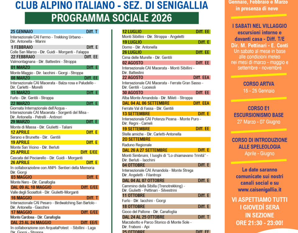 Tutti possono partecipare alle uscite previste nell’annuale programma sociale che prevede escursioni di tutti i livelli e difficoltà per quasi tutte le attività praticate dai nostri soci.
